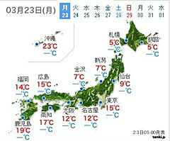今日は、日本付近は冬型の気圧配置に。桜の便りが続々と届いた土日からは一転して、全国的に寒さが戻ります。各地の今日の天気は……