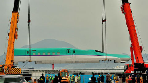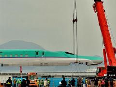 去年、函館港から陸揚げされた北海道新幹線!! 新幹線が海から登場するという珍しい光景に、多くの鉄道ファンが集まりました。