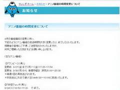テレビ静岡のサイトに掲載されたお知らせ