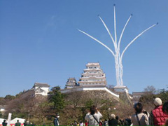 ちなみに演目ですが、傘型隊形から散開する「サンライズ」、360度旋回する「デルタ360度ターン」、姫路城の白い姿にちなみ、白鳥をイメージした隊形で上空を通過する「スワローパス」、6つの円で桜の花を上空に描く「サクラ」、2機が上空でハートを描く「ビッグハート」の5演目が披露されたようです。
