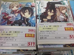 教科書にはちゃんと「ソードアート・オンライン」第1巻(川原礫、電撃文庫)を指定しているため、Twitterでは同書が教科書コーナーに陳列されている写真が注目を集めていました。ちなみに、去年も同じ現象が起こっています。