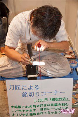全日本刀匠会も出展。刀匠による銘切りが行われていた