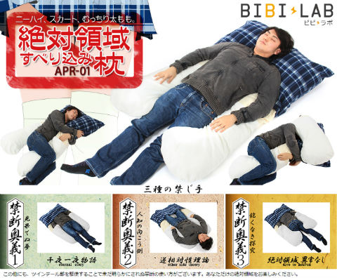 あこがれの絶対領域にはさまれて眠れる「絶対領域すべり込み枕」が登場しました。めくれるスカートもついていてお値段2015万401円。