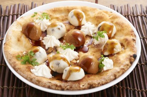 ピッツァ&カフェ「Napoli’s PIZZA&CAFFÉ」が1枚10万円の「饅頭ピッツァ」を発売。最高級あんこがつまった10個の饅頭(じゅうまん)と最高級黒蜜、最高級生クリームを使用しています。ちょっと食べてみたいかも。