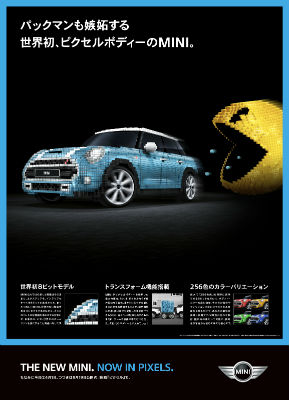 レトロゲームのキャラに扮(ふん)した宇宙人が地球に攻めてくる映画「ピクセル」(関連記事)では、BMWのMINIの“8ビットモデル”を発売。トランスフォーム機能を搭載し、ボタン1つで分解可能。自由に変形させることができ、全256色のボディカラーを設定。4月1日限定で販売します。