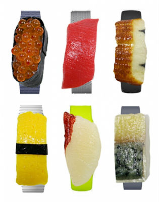 寿司をいつでも携帯できる時計型ウェアラブルデバイス「Sushi Watch」が誕生しました。TAMAGO Edition(200円)からMAGURO Edition(2000円)まで6モデル。いつでもどこでも寿司を食べることができます。