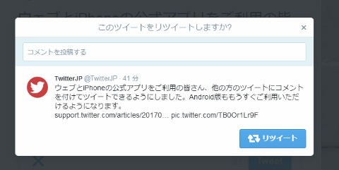 Twitter、コメント付きで他人のツイートをRTできる機能導入