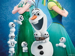 先日解禁された予告編に登場している小さな雪だるまたちが「スノーギース」。風邪をひいたエルサがくしゃみをするたび、小さな“スノーギース“が生まれるらしい。オラフも小さな雪だるま“スノーギース”達の可愛さに夢中になるほほえましいエピソードも描かれるとのこと。