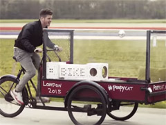 巨大なネコボックスにネコちゃんを乗せられるネコ専用自転車「キティモビル」を作った人が登場。アムステルダムからロンドンまで約300マイルの自転車旅行を行い、YouTubeに動画を投稿しています。