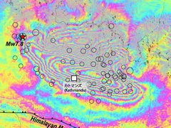 4月25日にネパールで発生した地震について国土地理院は、地球観測衛星「だいち2号」でのデータを解析した結果、地殻変動を検出したと発表した。