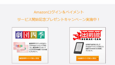 劇団四季と出前館で、Amazonアカウントを使って支払いができる。