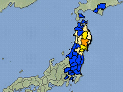 各地の震度は、岩手県内陸南部で震度5強、岩手県内陸北部・宮城県北部・宮城県中部で震度5弱、青森県三八上北・岩手県沿岸北部・岩手県沿岸南部・宮城県南部・秋田県沿岸北部・秋田県沿岸南部・秋田県内陸南部・山形県村山で震度4など。