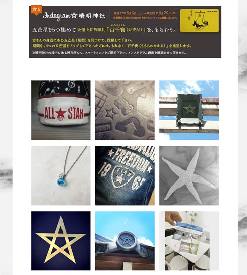 身の回りの「☆」を探そう! Instagramに写真を5つ投稿すると、非売品のお札を授けてもらえます。金運上昇!