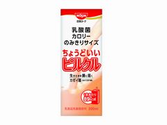 1本の内容量は200ミリ。これまでのピルクルにあった65ミリサイズでは物足りず、だけど500ミリサイズだと多すぎるという人向けに、その間をとった飲みきりサイズとなっています。カロリーも通常のピルクルの30%オフとなる89キロカロリーで、脂肪分はゼロ。ほかの製品と同じく乳酸菌「カゼイ菌(NY1301株)」も摂取できます。