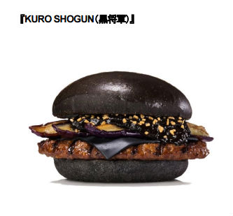 「KUROバーガー」は8月21日から、「KURO SHOGUN(黒将軍)」(単品690円)、「KURO TAISHO(黒大将)」(単品590円)の2種を販売する。竹炭を練り込んだ「KUROバンズ」と「KUROチーズ」、イカ墨を加えたコクのある「ブラックハッシュドソース」を使用する。