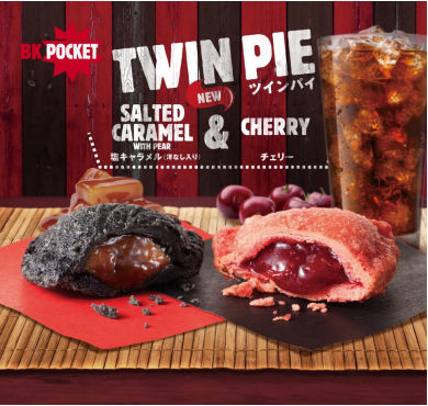 また7月3日には、赤と黒のパイがセットになった「TWIN PIE」(単品150円)を発売する。赤いパイは、さくらんぼパウダーで赤色を出したパイ生地に、チェリーを煮詰めたジャムをで包んだ。黒いパイは、竹炭を配合したパイ生地に、塩キャラメルと角切りの洋なしを包んだ。