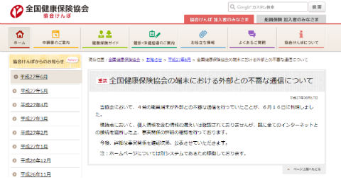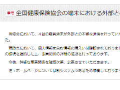 4台の端末が外部との不審な通信を行っていたことが16日に判明した。同協会ではインターネットとの接続を遮断した上、事実関係を確認している。医療費情報の照会などの情報提供サービスが一時休止となっている。