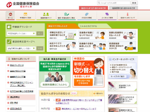 全国健康保険協会のWebサイト。別システムなので稼働している