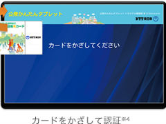 タブレットは、NFC(近距離無線通信技術)対応ICカードなどをかざすことで、あらかじめ登録した各種サービスに自動ログインできる「簡単ログイン機能」を搭載。自治体や商店街からのお知らせ、地図、ニュース、雑誌読み放題、メールなどのサービスを提供します。
