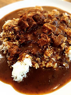 ウリは激辛カレーで、最も辛い「トリプルセブンカレー」、中辛の「シングルセブンカレー」、トリプルセブンカレーとシングルセブンカレーのあいがけ「ダブルセブンカレー」のいずれも800円(税別)。