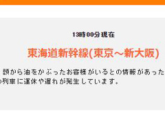JR東海Webサイトによると、「頭から油をかぶったお客様がいる」(13時発表)として、車両の点検が行われていました。報道によると車内では油に引火して火災が発生。