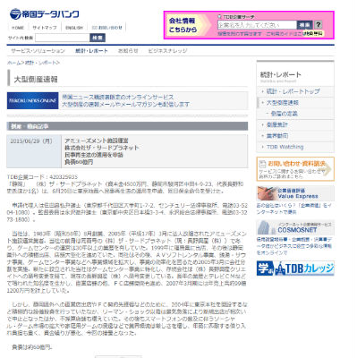 ゲームセンターを運営するザ・サードプラネット(静岡県静岡市)が、民事再生法の適用を申請した。帝国データバンクによれば負債は60億円。