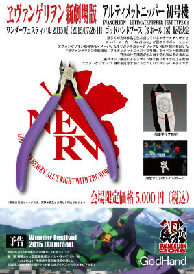 ニッパーを製造・販売するゴッドハンドが、エヴァンゲリオン初号機をイメージした「ヱヴァンゲリヲン新劇場版 アルティメットニッパー初号機」をワンダーフェスティバル2015[夏](7月26日、幕張メッセ)で販売します。