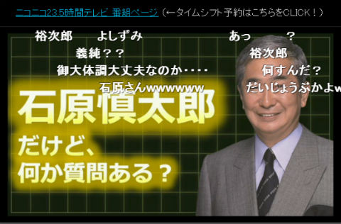 「石原慎太郎だけど、何か質問ある?」 ニコニコ23.5時間テレビに降臨