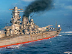 ゲーム内に登場する戦艦大和。旭日旗でなく現在の日本の旗になっている (c)Wargaming.net