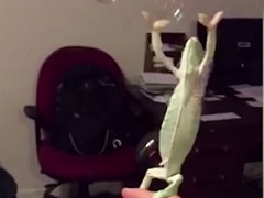 シャボン玉ではしゃぐカメレオンの動画が注目を集めています。