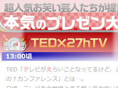 27時間テレビ内では「TED」のパロディ企画「TEDx27hTV(テレビがえらいことなってるけど、どーすんの?カンファレンス)」を放送(番組ホームページより