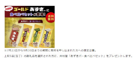 「あずきバー食べ比べセット」はあずきバー、ゴールドあずきバー、ゴールド宇治金時バーなど合計23本入り。もらえるのは7月23日から9月30日までの期間に5万円の寄付を申し込み、謝礼品に三徳包丁「関孫六」など包丁5品のいずれかを選んだ人となっています。