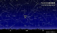 流星群とは、単に流星がまとまって見えることではなく、一つの定義があります。それはとてもシンプル。「毎年ほぼ決まった時期に、多数の流星が出現する現象」です。この、「毎年ほぼ決まった時期に、多数の…」というところが大切です。流星は一年中私たちの上に流れています。ですから、流星群が来ている間にも別の流星も一緒に見ていることがあります。それらの名もない流星とは異なり、流星群と呼ばれる流れ星たちは、ある星座を起点(放射点)に流れるので、その星座の名前がついています。今まさに、ピークを迎えている「ペルセウス座流星群」は、ペルセウス座を起点として流れ星が発生しているのです。