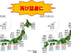 今日は関東では7月23日以来の猛暑日地点ゼロに。週末は晴れ間が戻り、関東や東海を中心に再びうだるような暑さになるでしょう。東京や名古屋でも再び猛暑日になりそうです。