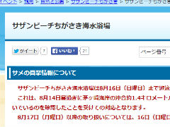 茅ヶ崎市は16日までサザンビーチちがさき海水浴場を遊泳禁止に。