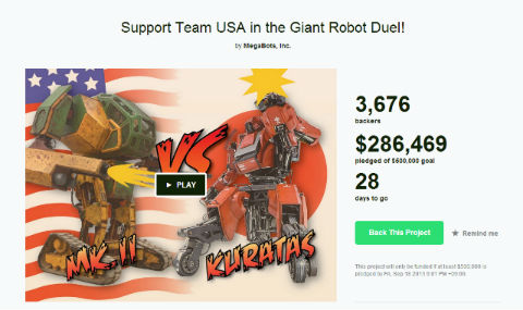 日米ロボット対決で戦う「Mk.II」の装甲や火力をパワーアップするため、50万ドルの支援を募集しています。