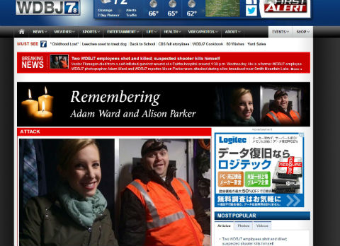 亡くなったのは地元テレビ局WDBJ7のリポーター、アリソン・パーカーさんとカメラマンのアダム・ワードさん。撃ったのは同局の元社員ベスター・フラナガン容疑者(ブライス・ウィリアムズとしてテレビに出演)で、犯行後、逃走中に自殺しています。