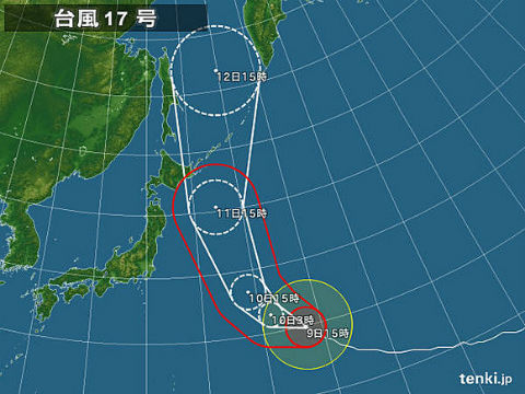 台風17号はハワイ近海で「ハリケーン」として生まれたものが、日付変更線をこえて「台風」となり、日本付近に接近してきたものです。台風17号は今後、日本の東を北上する見込み。11日金曜には北海道に接近するおそれが出てきました。