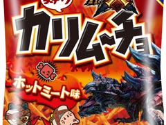 ラインアップは「ホットミート味」「ヒーヒー濃厚チーズ味」の2種類。「ホットミート味」は、寒さの影響を受けなくなるアイテム「ホットミート」をイメージし、こんがりと焼けた肉の旨みとスモーク感にカラムーチョらしい辛さが絡みあった味わい。パッケージも4大メインモンスターにあわせて4種類が用意されています。