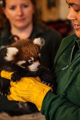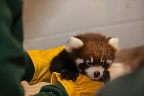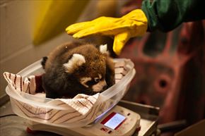 もふもふな赤ちゃんレッサーパンダの体重測定の様子がかわいらしい!