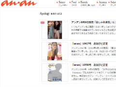 9月9日刊行のファッション誌「an・an」の電子版について、紙版に掲載されていた内容が載っていなかったことに発行元が謝罪した。