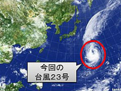 その大きさは衛星画像からもわかります。先月、同じように日本の東を北上した台風17号と、今回の23号を比べてみました。(上の図)台風を取り巻く雨雲の大きさが違うことが、明らかです。