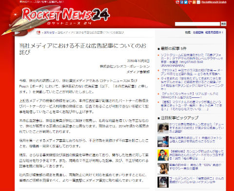 「ロケットニュース24」運営会社 不正な広告記事の掲載で謝罪