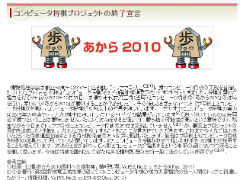 情報処理学会は10月11日、「コンピュータ将棋プロジェクト」の終了を宣言した。事実上プロジェクトの目的を達成したと判断したとしている。