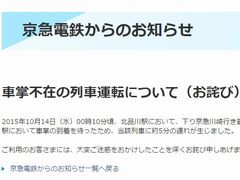 京急電鉄は本件について、「今回はこのようなトラブルを起こし、ご利用のお客さまに大変ご迷惑をおかけしたことを深くお詫び申し上げます。乗務員の基本動作を再徹底し、今後同じことが起こらぬよう再発防止に努めます」と謝罪しています。