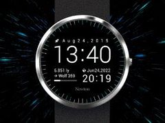 アプリ名は「Newton: Interstellar WatchFace」。地球を離れ、光速(秒速約30万キロ)に近い速度の宇宙船で恒星間空間を旅する人に向けて設計。アプリの盤面に「宇宙船内の航行者の時刻」と「地球の時刻」を時計で映しだします。