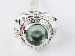 ネックレスは、ボンゴレファミリーの証である指輪・ボンゴレリングをベビーリングサイズのペンダントトップで模したもの。中央部の石には原作通りの色を用いながらオリジナルカッティングを施し、周囲にも「VONGOLA」「FAMIGLIA」の文字をあしらって、作中の指輪を細かく再現しています。チェーンの端にあるエンドパーツにも、リング中央部のストーンや紋章をシルバー素材で表現しました。