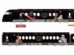 南海電鉄が映画「スター・ウォーズ/フォースの覚醒」の世界観を車両にデザインした特急ラピート特別仕様車「スター・ウォーズ/フォースの覚醒」号を、11月21日から2016年5月8日までの期間限定で運行します。区間は難波〜関西空港駅間です。