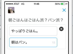例えば「バック・トゥ・ザ・フューチャー2を見た?」という質問に簡単に「YES/NO」を設定したり、迷っている子犬の名前を2つ挙げて選んでもらうなど、多くの人たちの意見を聞いてみたいときに便利そう。