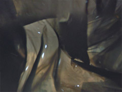 ガソリンスタンドと自転車店に挟まれた、一見何の変哲もない通り。しかし一歩足を踏み入れると、突然あたりは日が落ちたように薄暗くなり、周囲の景色も不自然にゆがんだものに……。よく見ると無数の青白い光の粒のようなものも確認できます。